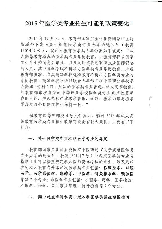 2015年医学类专业招生可能发生的政策变化2015-4-28 本文被阅读 935 次