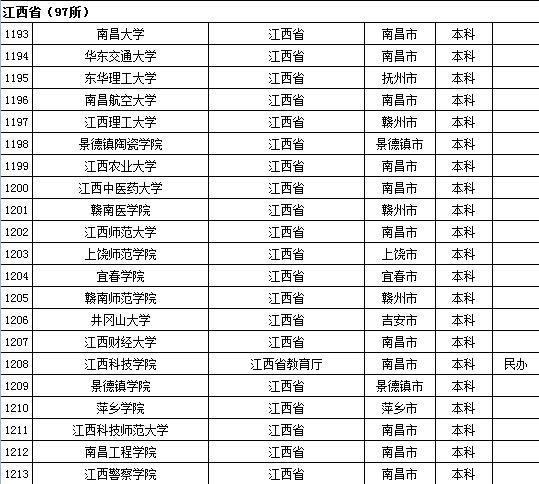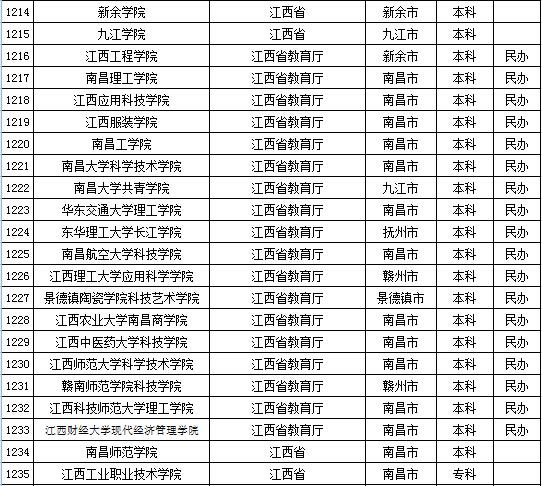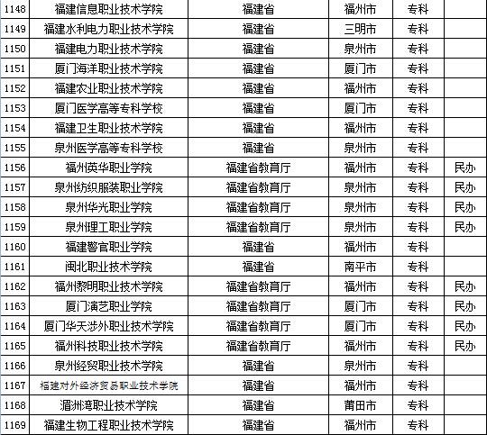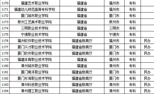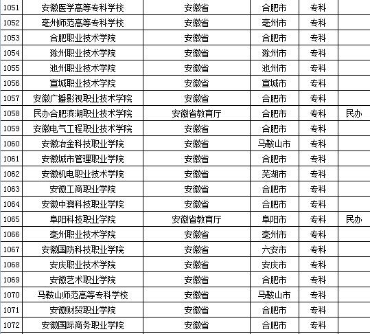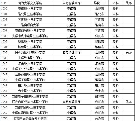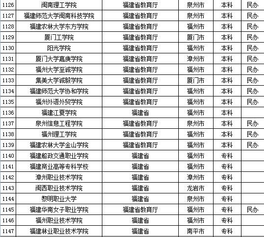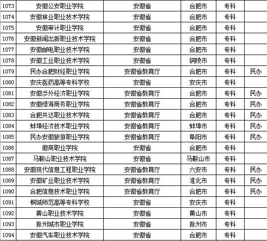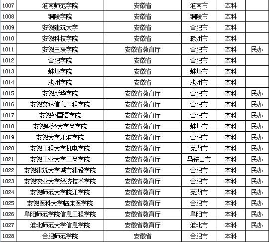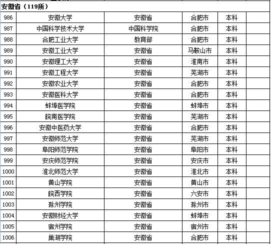 教育部发布2015年全国高等学校名单 安徽、福建及江西